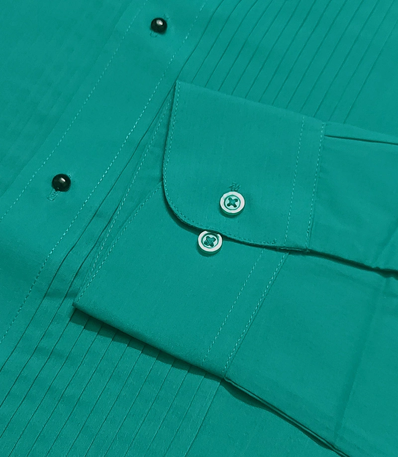 Men’s L/S Teal Color, Wing Collar, ¼” Pleated Tuxedo Shirt