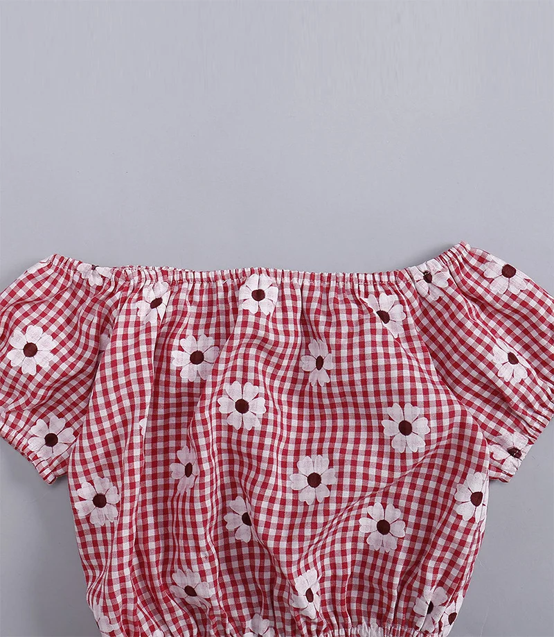 Girls' Floral Clothing Set Off Shoulder Tops + Short Skirt