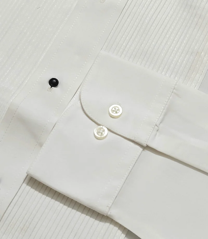 Men’s L/S White Color, Banded Collar, 1/8” Pleated Tuxedo Shirt