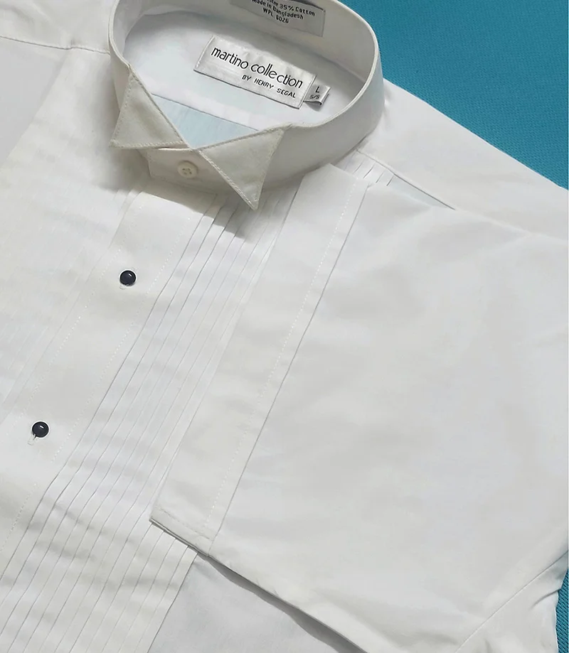 Men’s S/S White Color, Wing Collar, ¼” Pleated Tuxedo Shirt