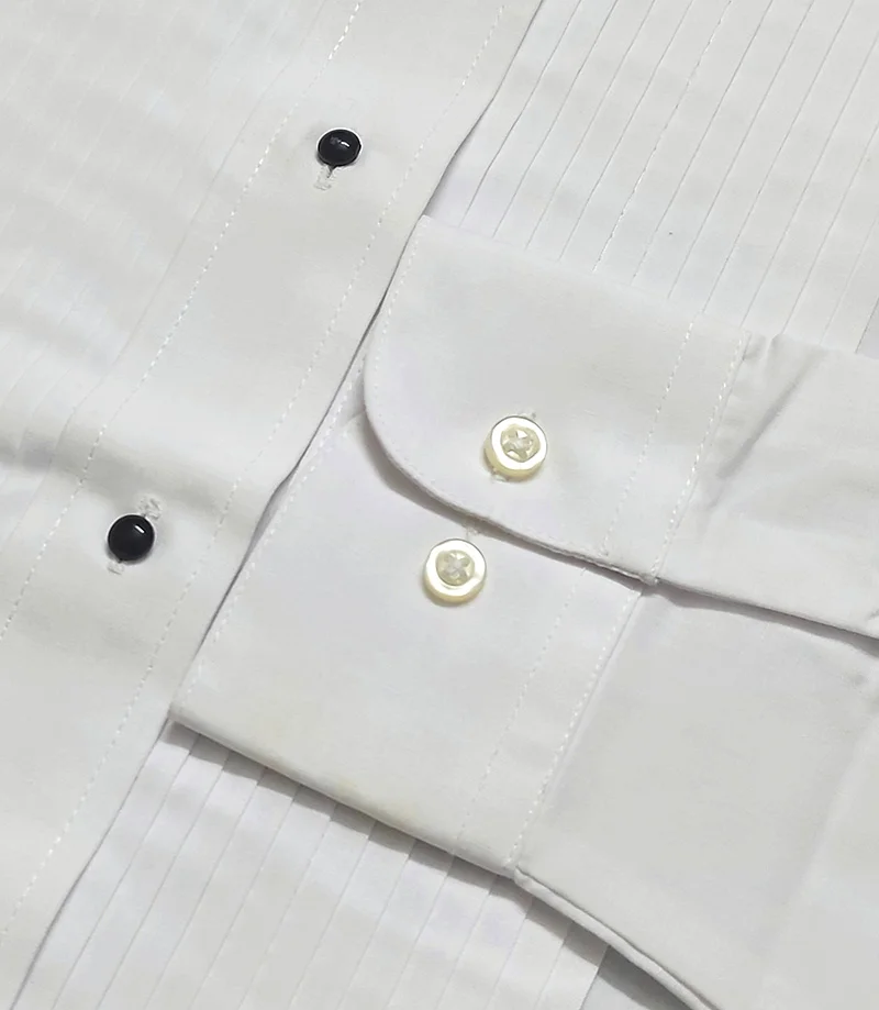 Women’s L/S White Color, Laydown Collar, ¼” Pleated Tuxedo Shirt