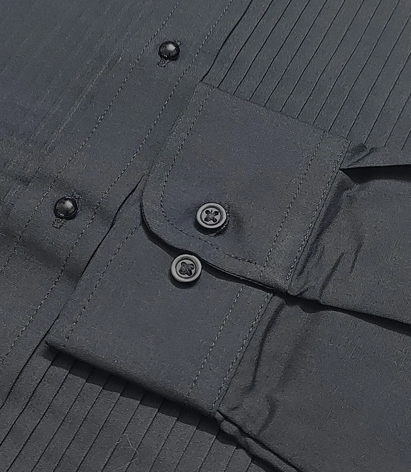Boys' L/S Black Wing Collar ¼” Pleated Tuxedo Shirt