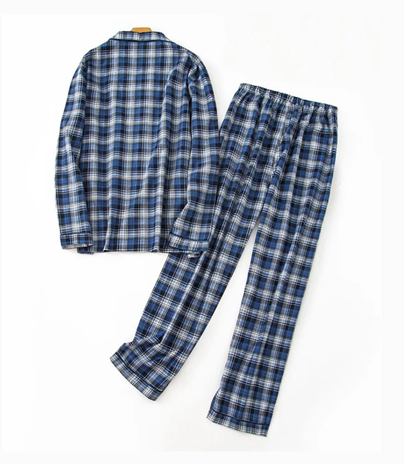 Men’s Thick L/S Sleepwear Lapel Collar Plaid Pajama Set