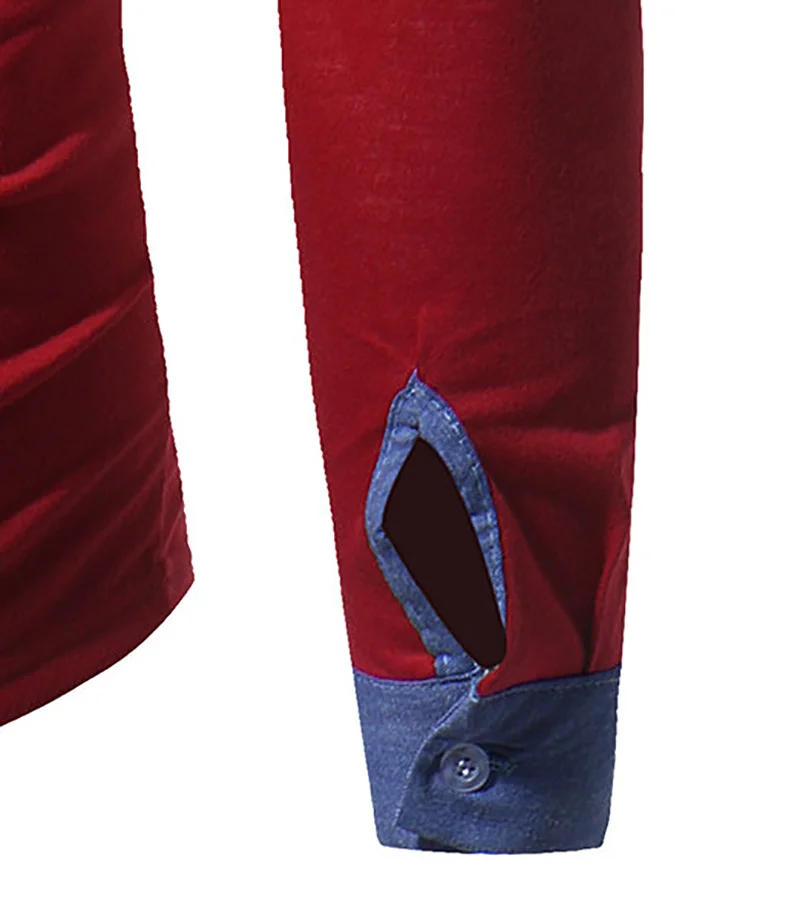 Men’s Brief Stitching Color Cotton Stand Collar L/S T-Shirt