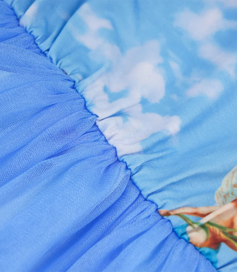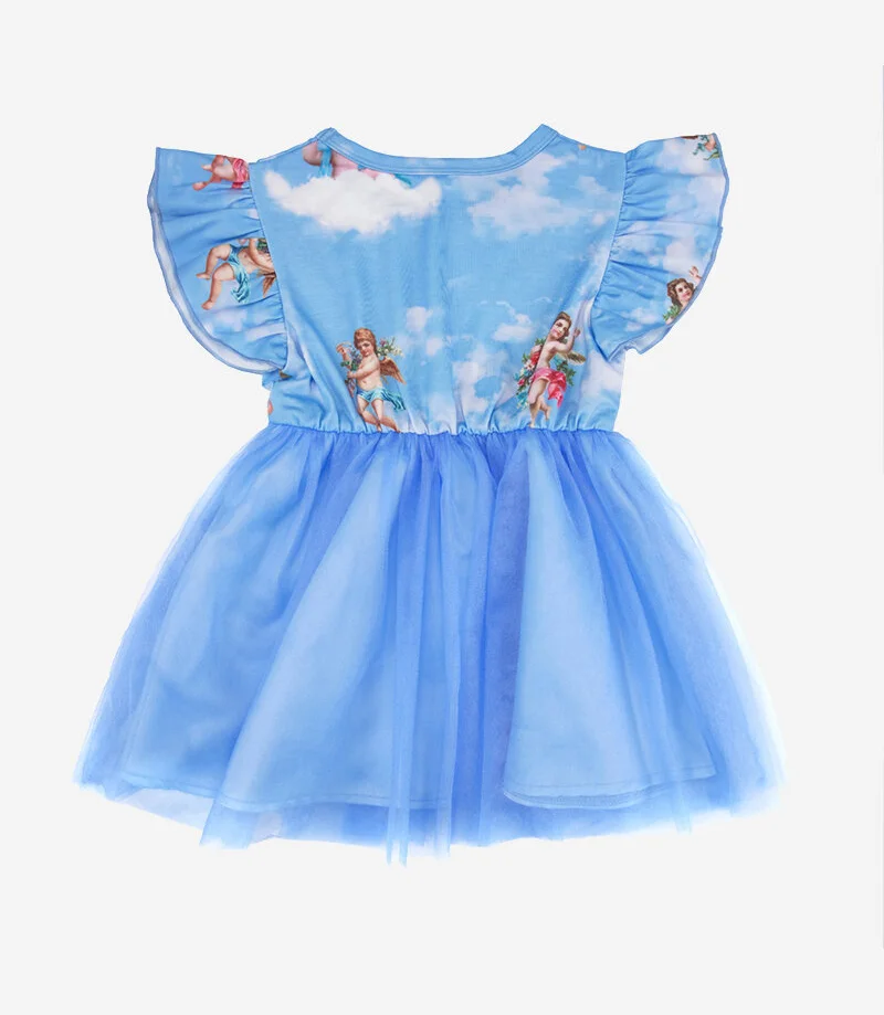 Girls' F/S Tulle Spliced Casual Blue Dress