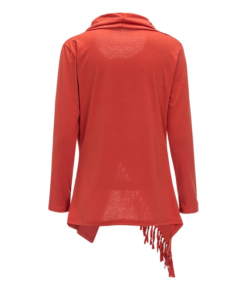 Women’s Irregular Tassels Pure Color L/S T-Shirt