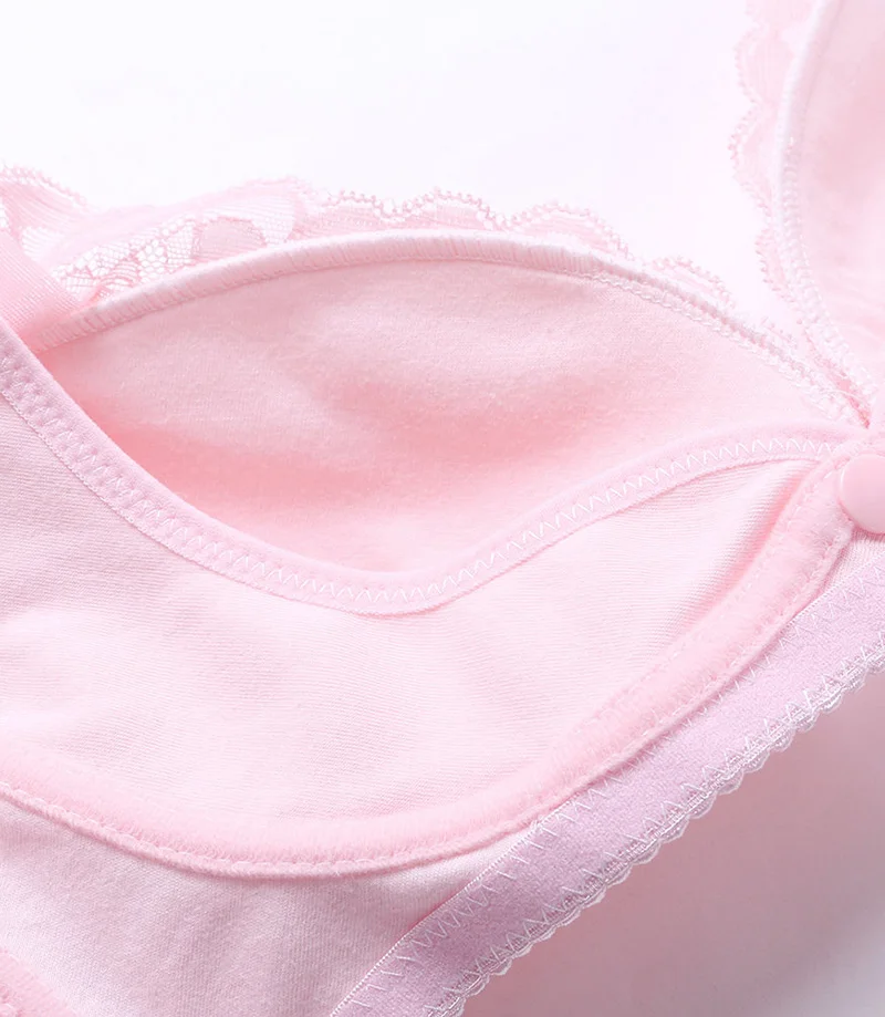 Lace Decor Front Button Open Wireless Maternity Nursing Bra