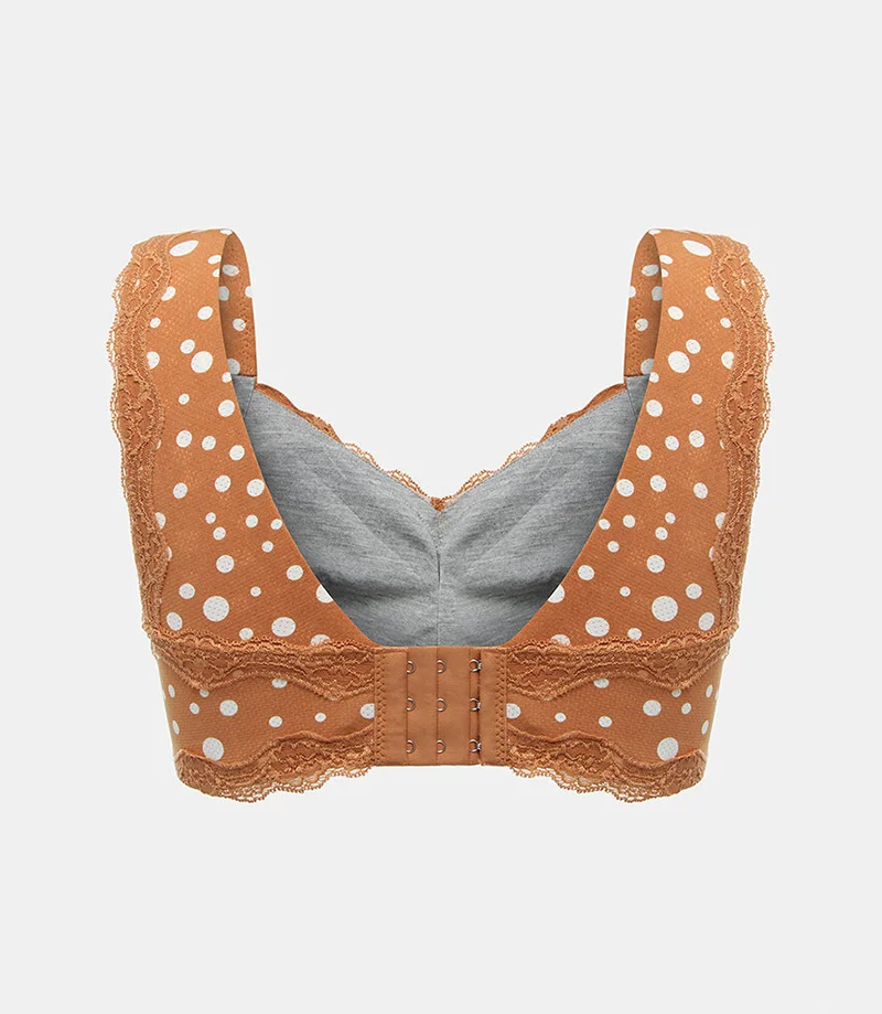 Women's Polka Dot Print Lace Wireless Breathable Back Closure Sleep Bra