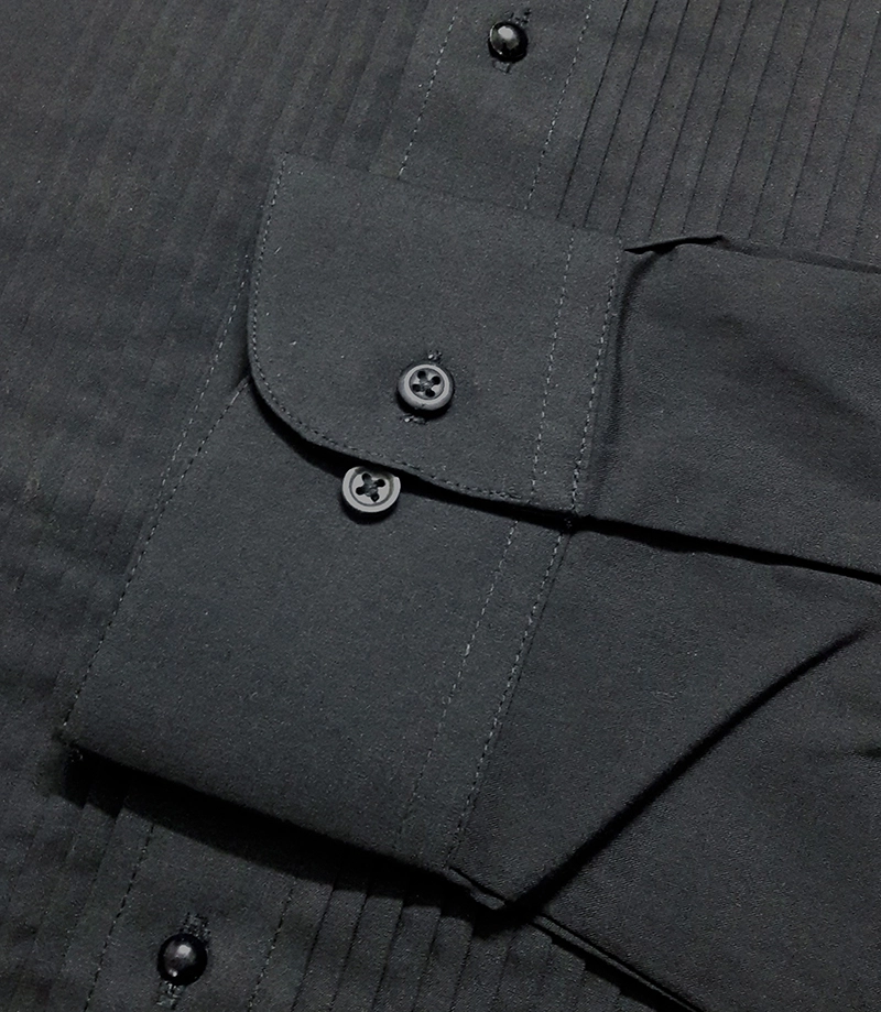 Men’s L/S Black Color, Wing Collar, ¼” Pleated Tuxedo Shirt