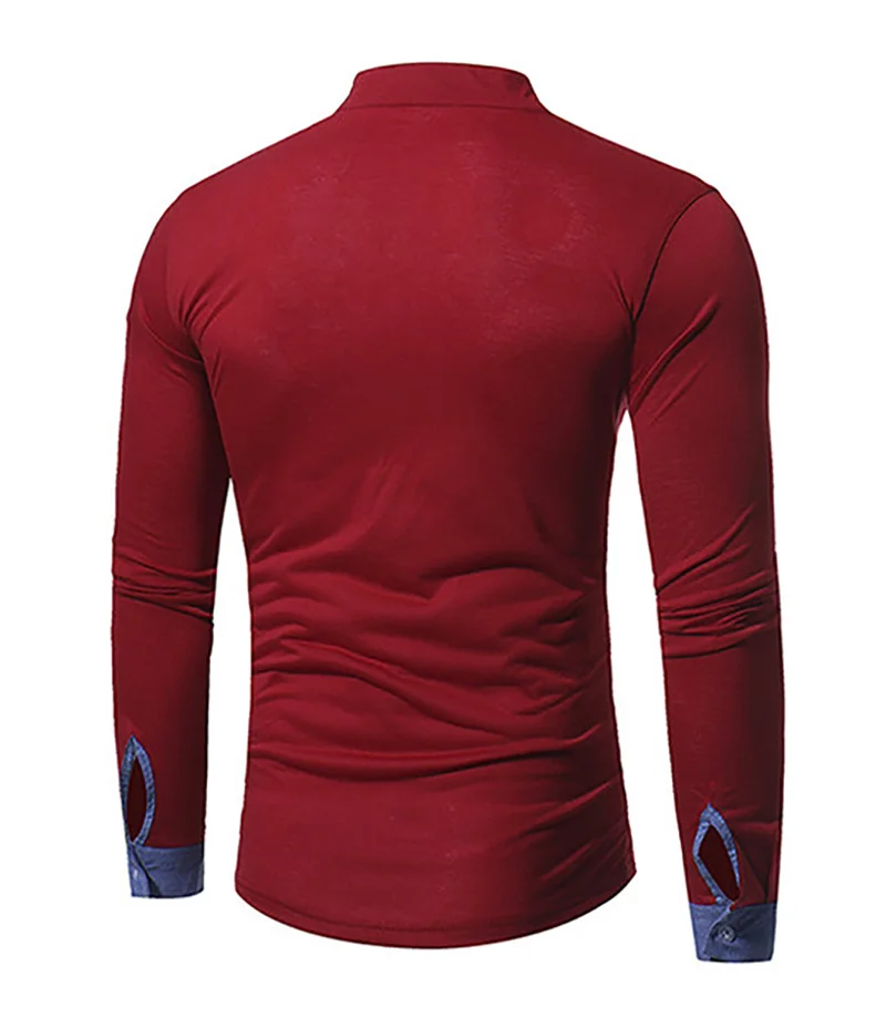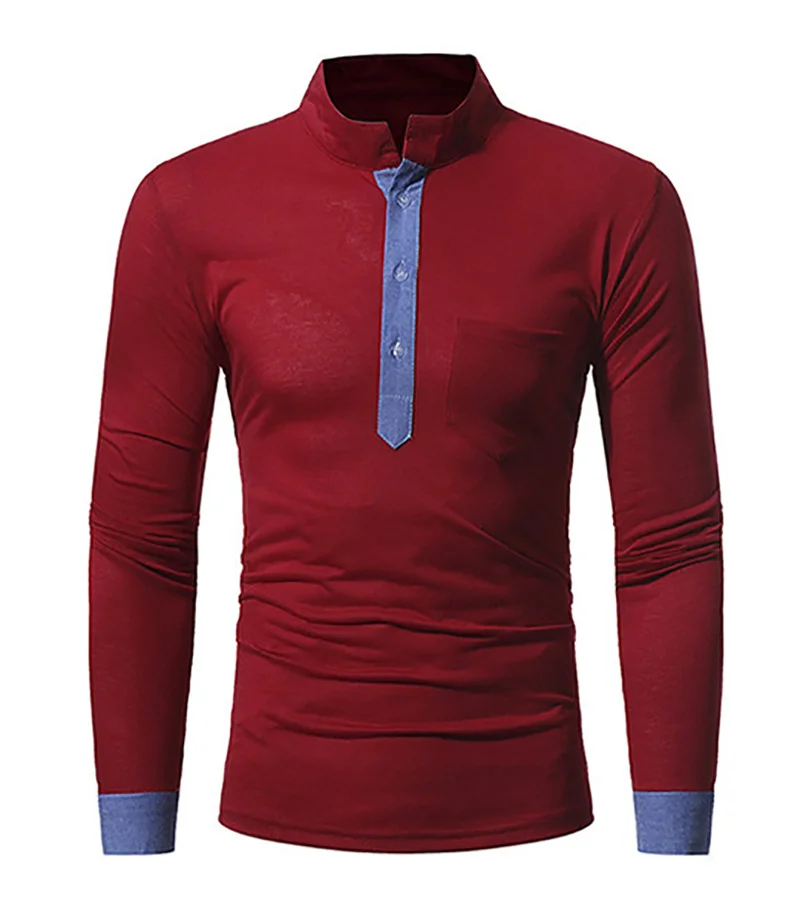Men’s Brief Stitching Color Cotton Stand Collar L/S T-Shirt