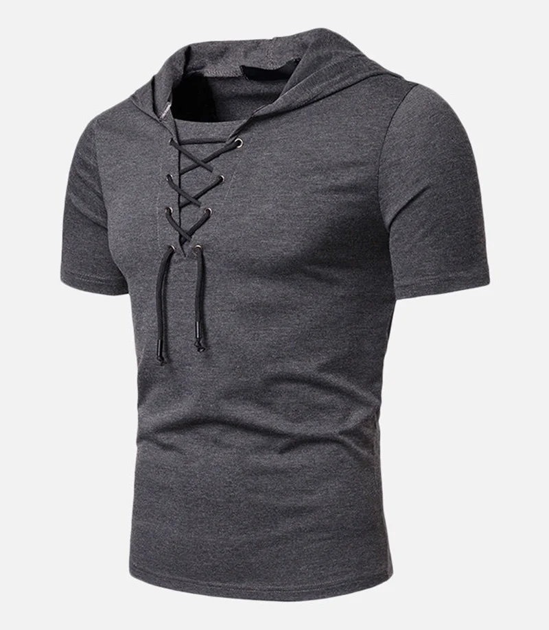 Men’s Hooded Lace Decoration Collar S/S T-shirt