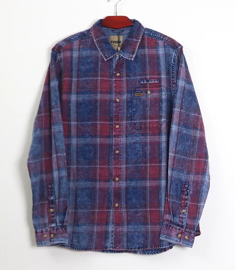Men’s L/S Casual Shirt One Chest Pocket, Acid Wash- Four