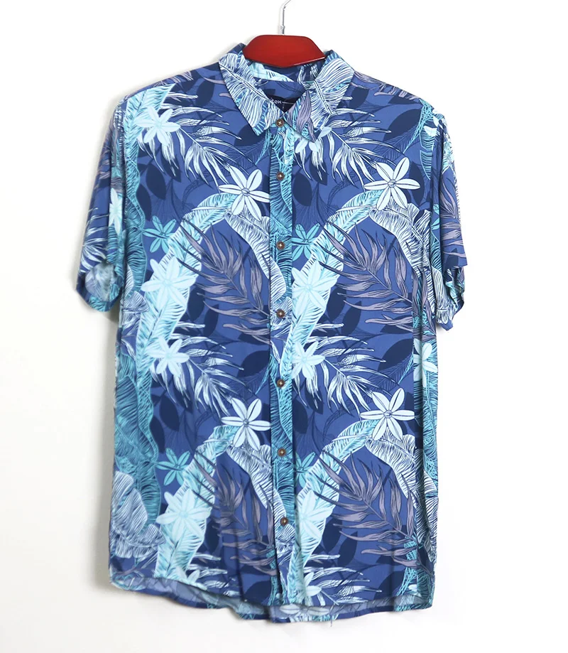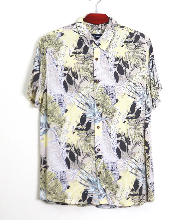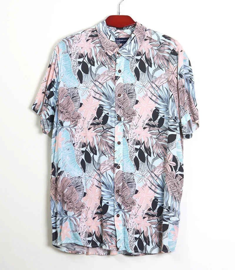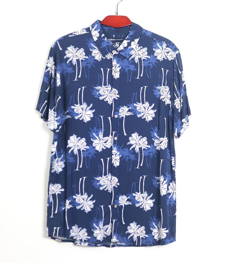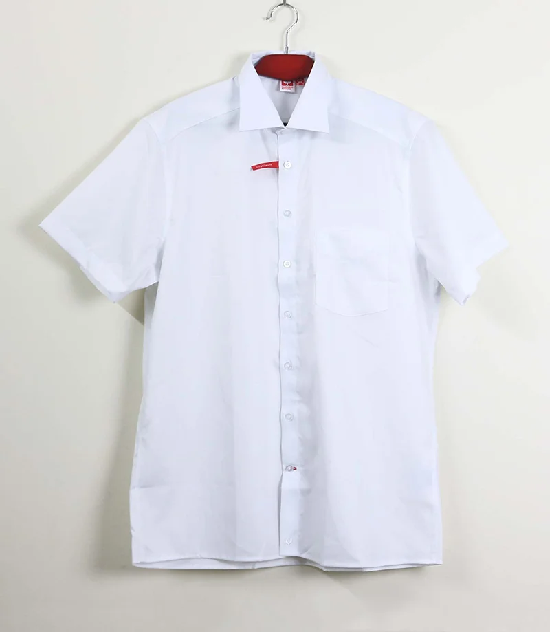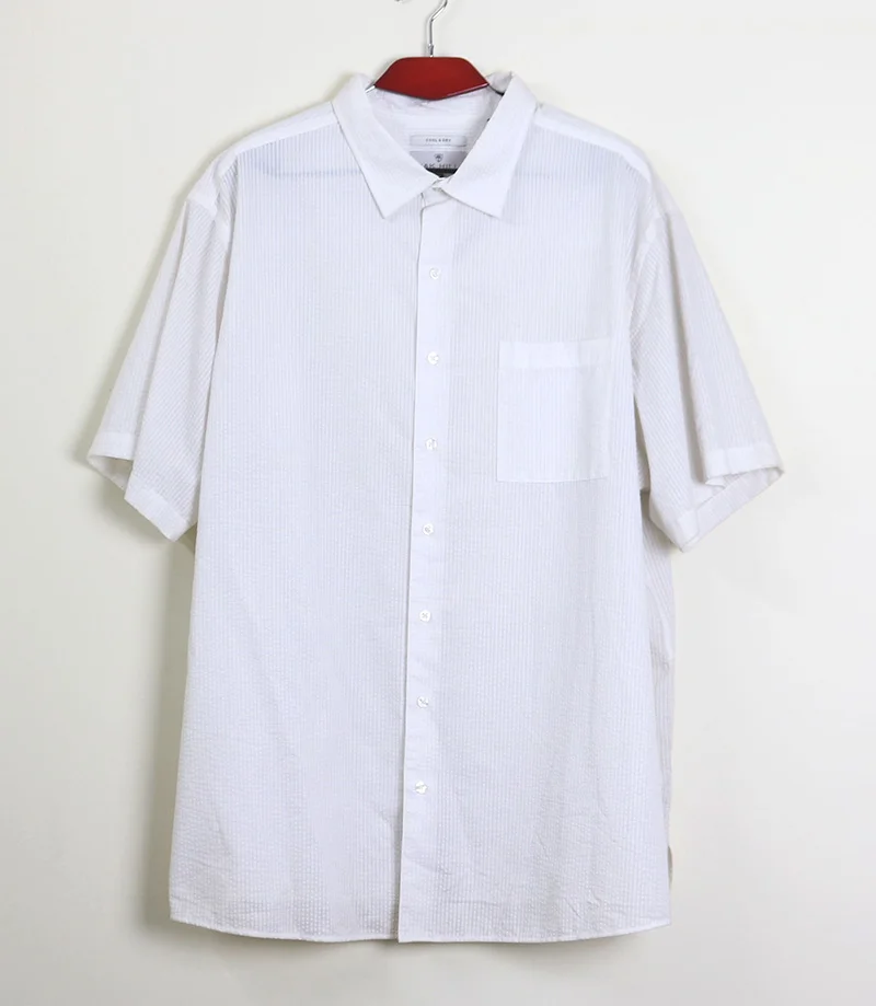 Men’s S/S Casual Shirt with Decorative Contrast at Side Slit and Inside Collar and Inside Sleeve Hem