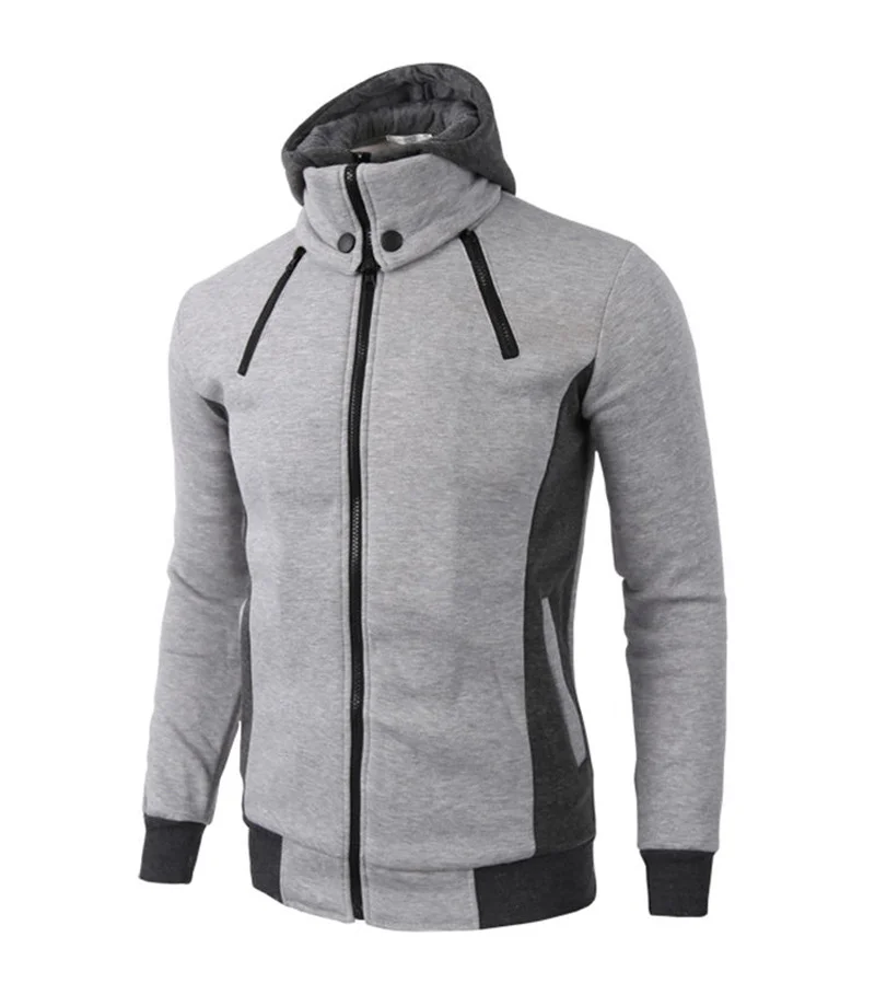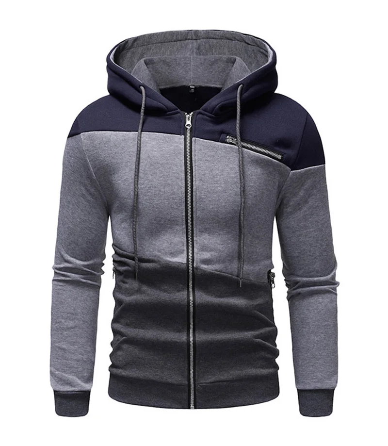 Men’s Stitching Drawstring Zipper Design Hoodie