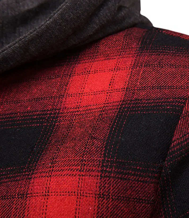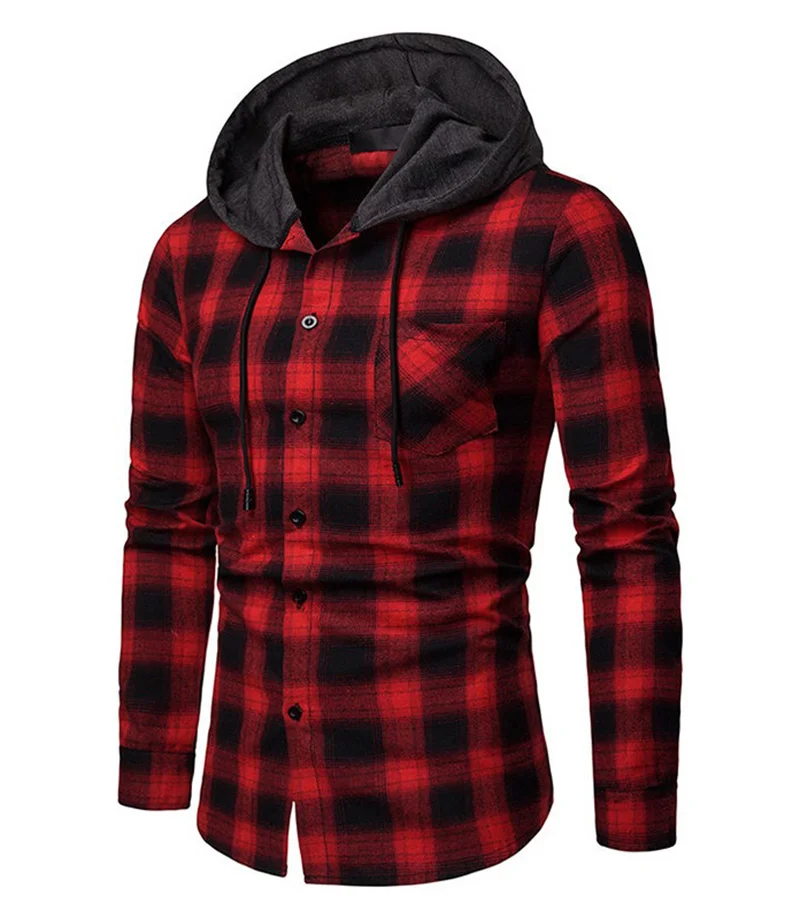 Men’s Plaid Long Sleeve Drawstring Hoodie