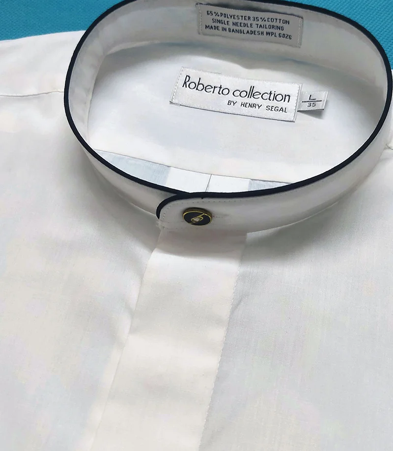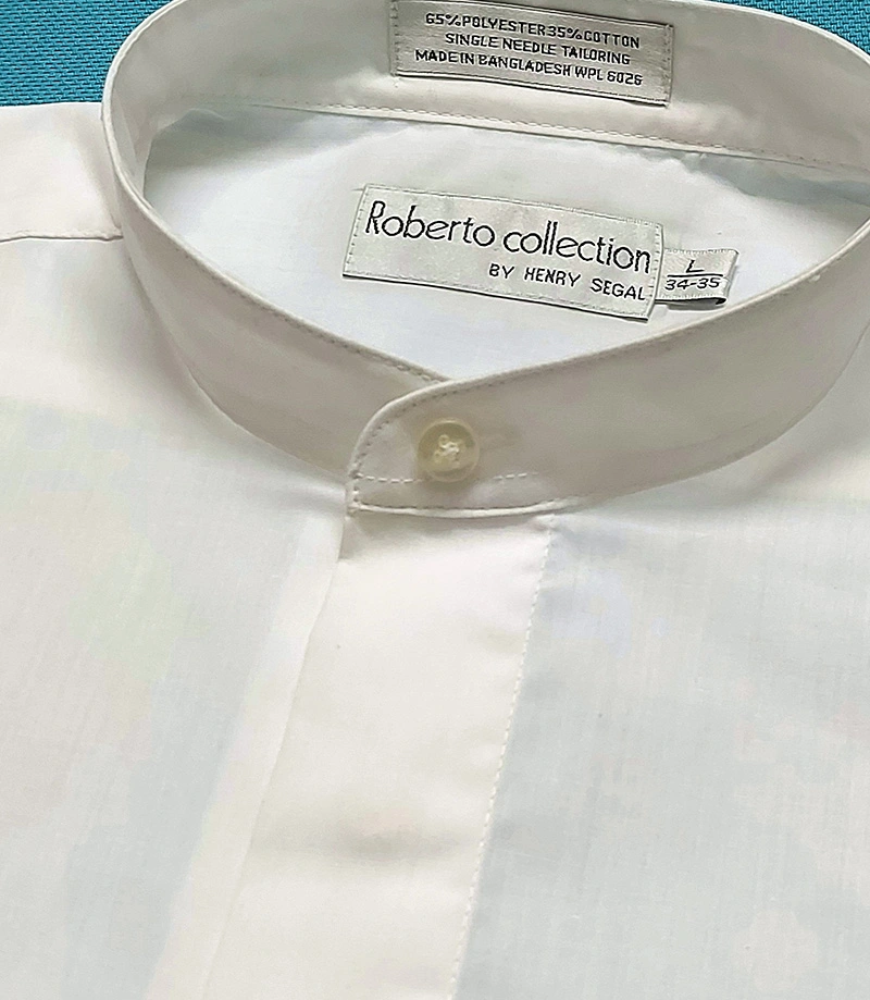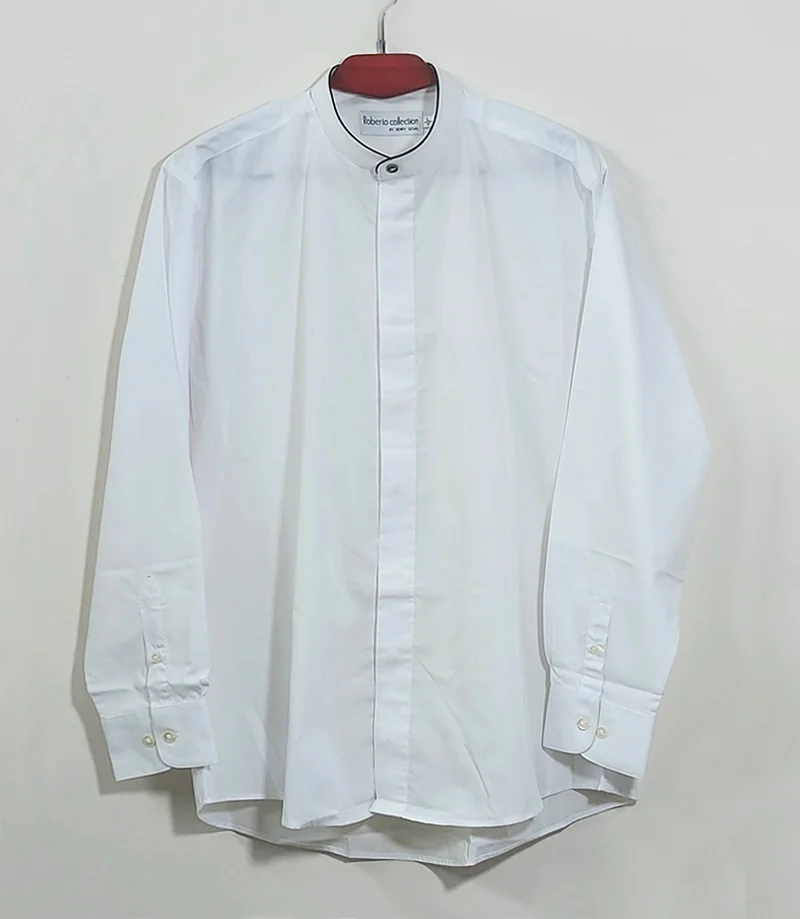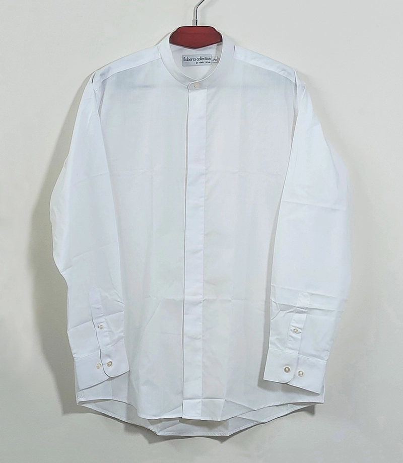 Men’s L/S White Color, Banded Collar, Hidden Placket Shirt