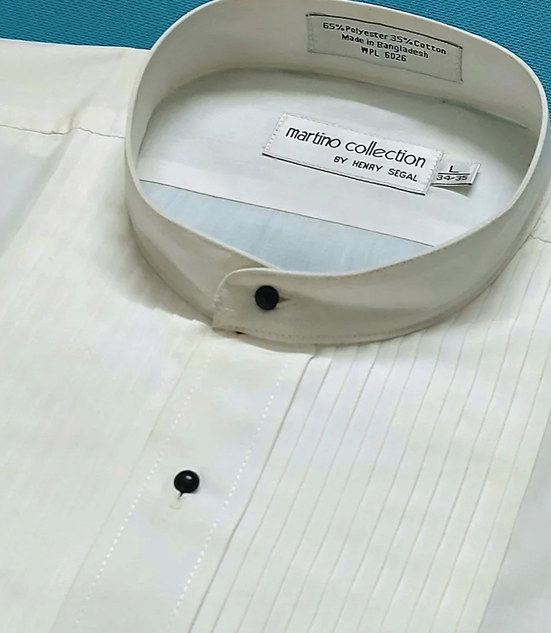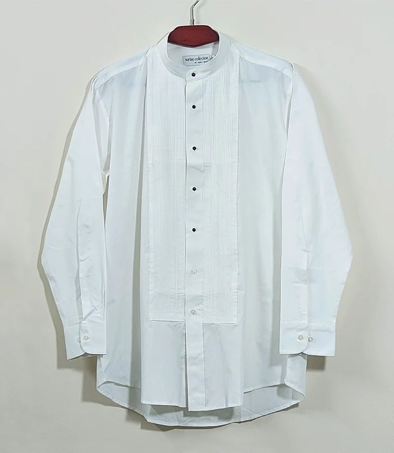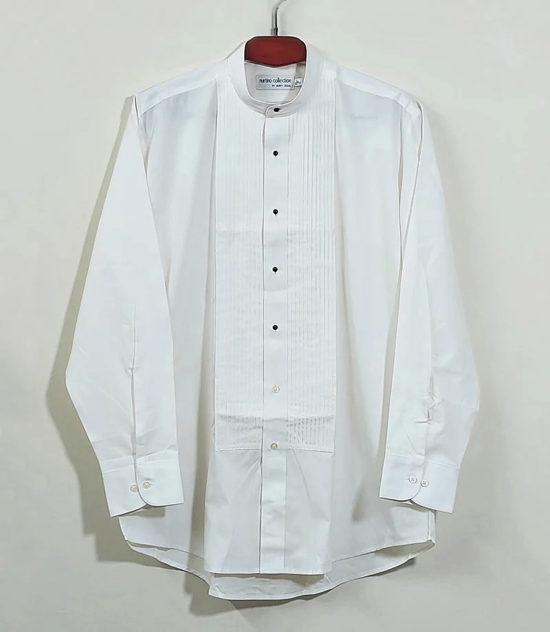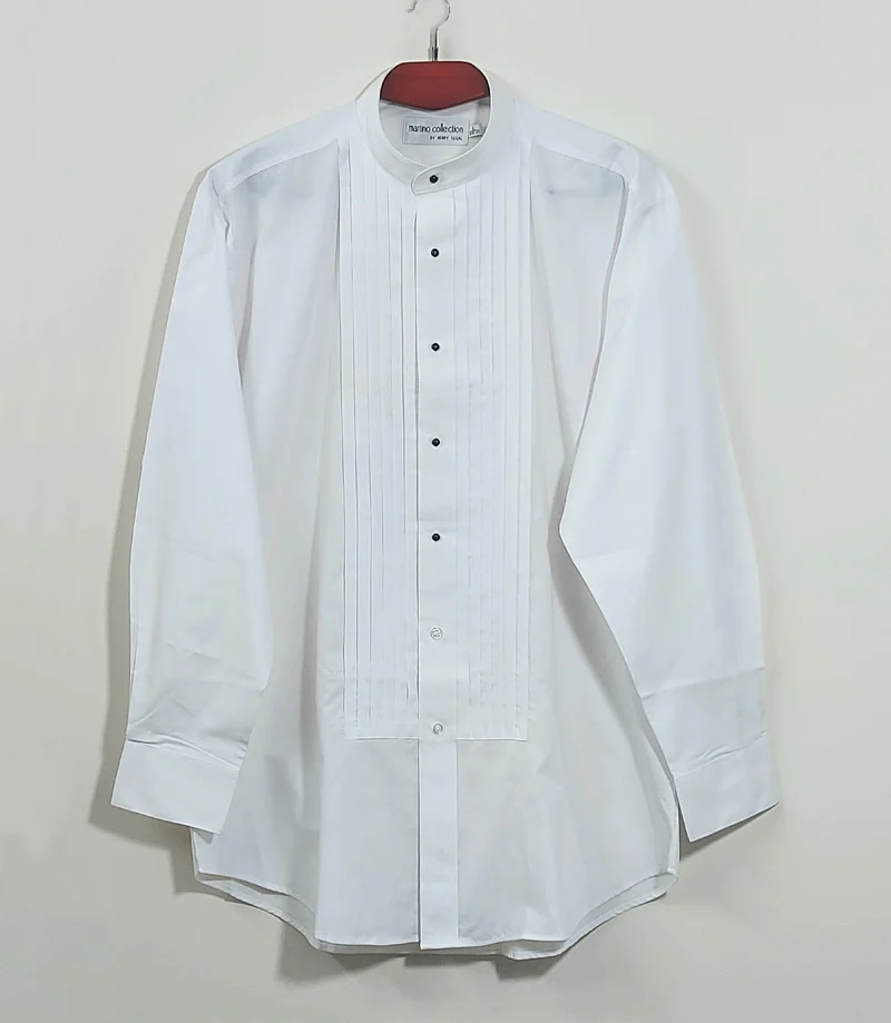 Men’s L/S White Color, Banded Collar, ¼” Pleated Tuxedo Shirt