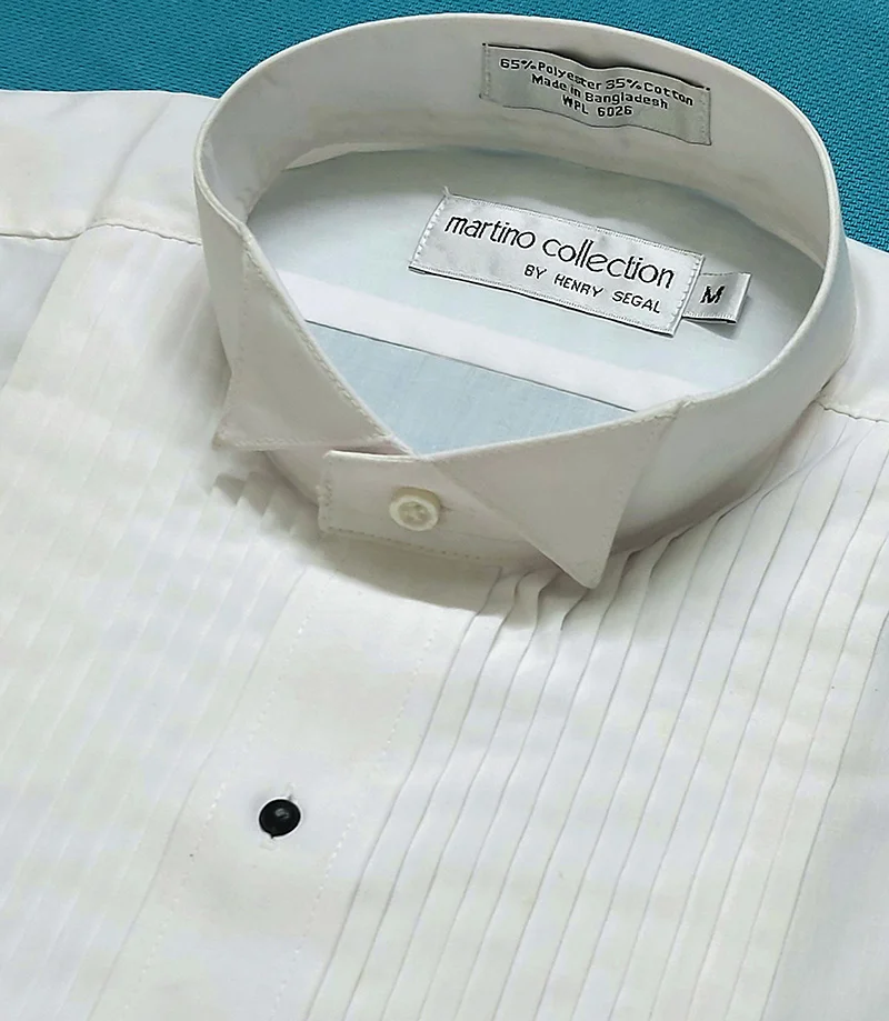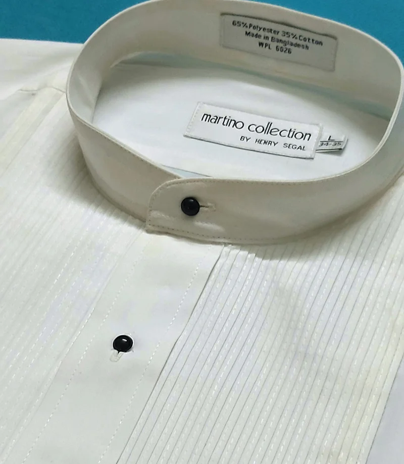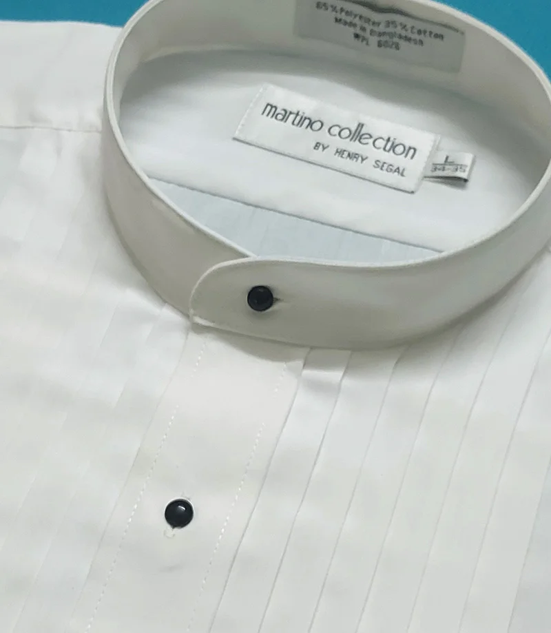 Men’s L/S White Color, Banded Collar, 1/8” Pleated Tuxedo Shirt