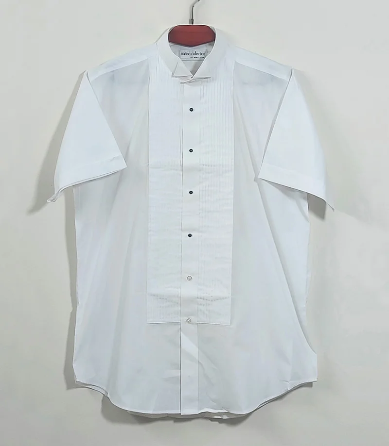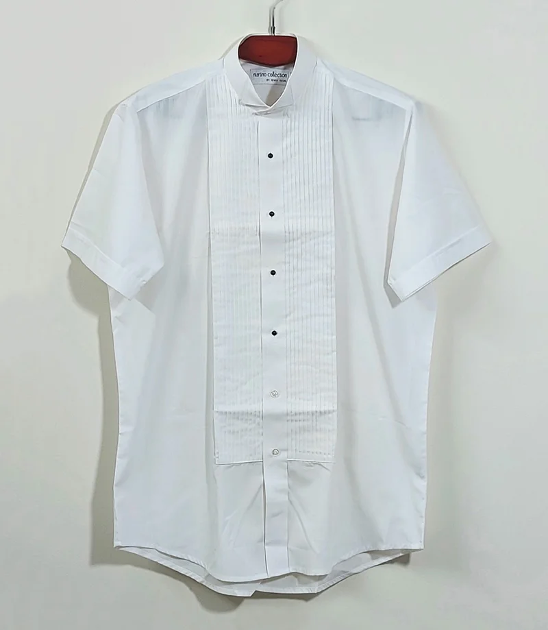 Men’s S/S White Color, Wing Collar, ¼” Pleated Tuxedo Shirt