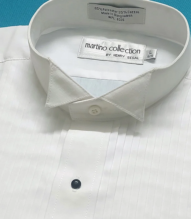 Men’s S/S White Color, Wing Collar, ¼“ Pleated Tuxedo Shirt