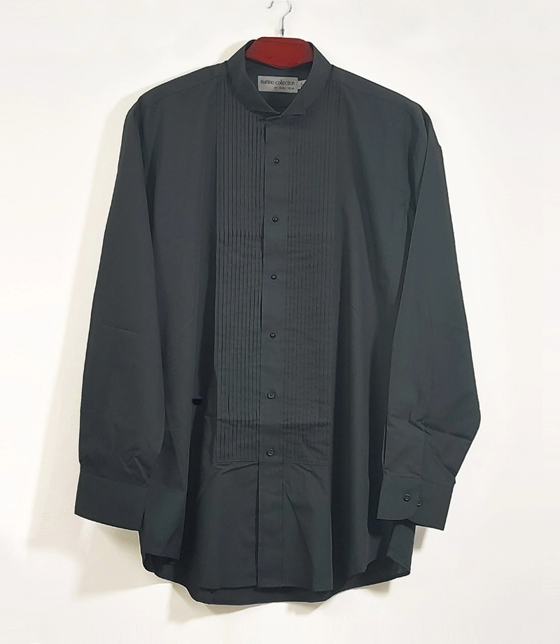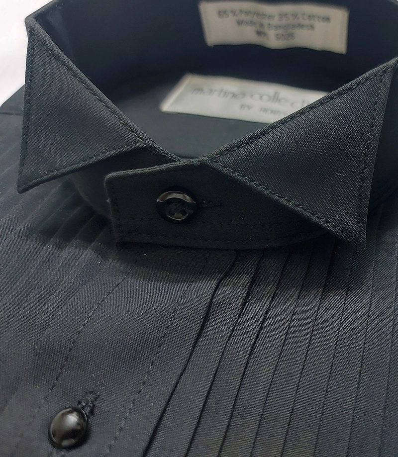 Men’s L/S Black Color, Wing Collar, ¼” Pleated Tuxedo Shirt