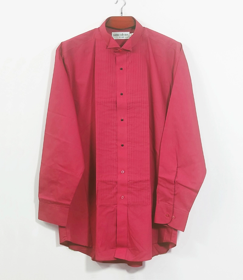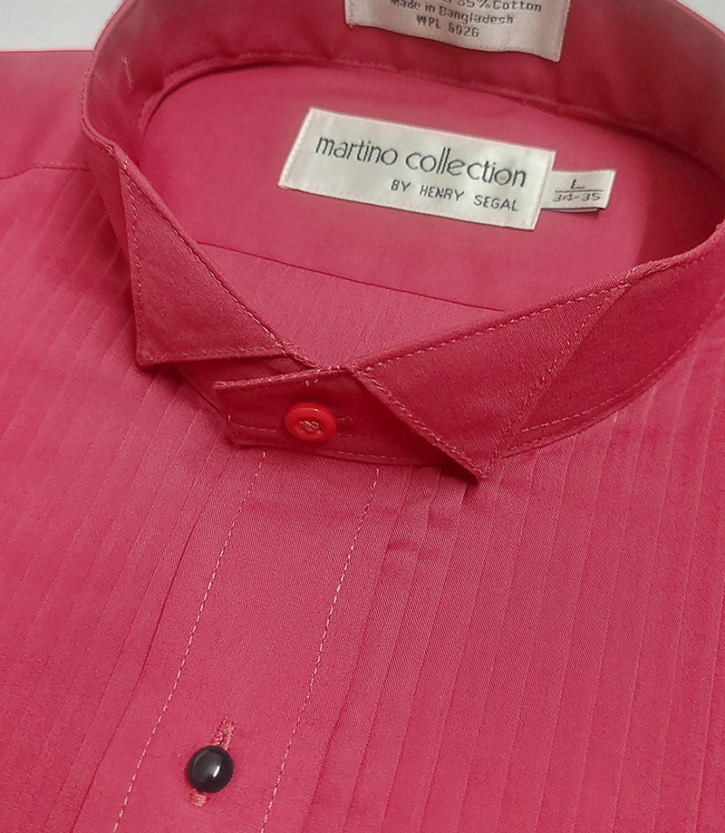 Men’s L/S Fuchsia Color, Wing Collar, ¼” Pleated Tuxedo Shirt