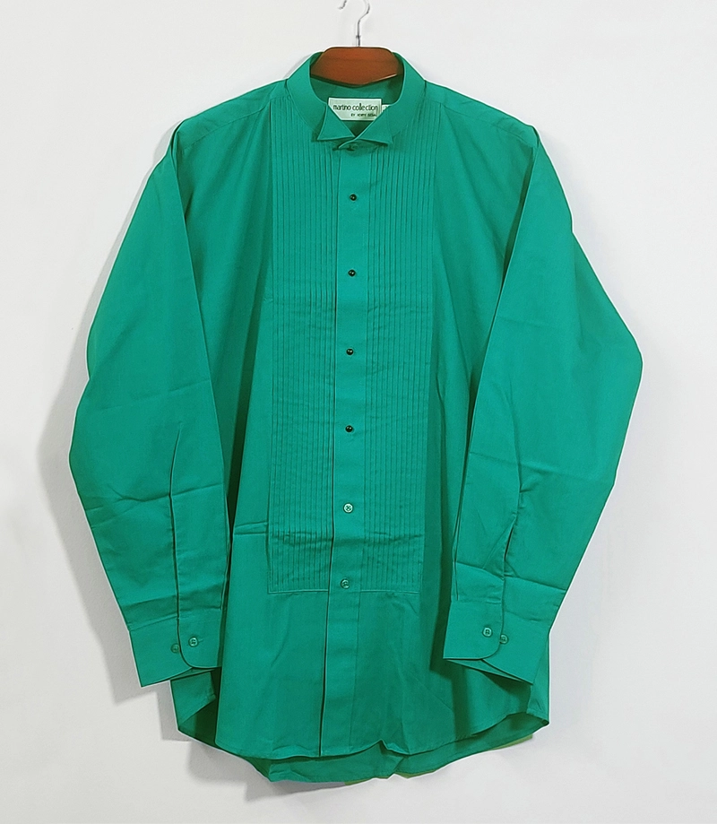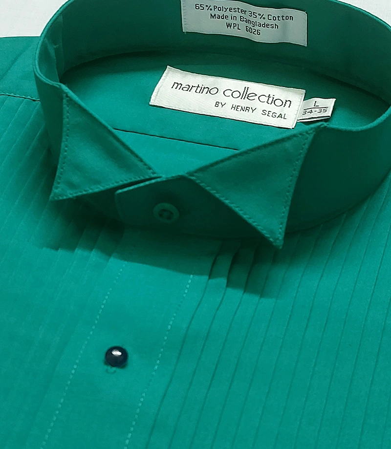 Men’s L/S Teal Color, Wing Collar, ¼” Pleated Tuxedo Shirt