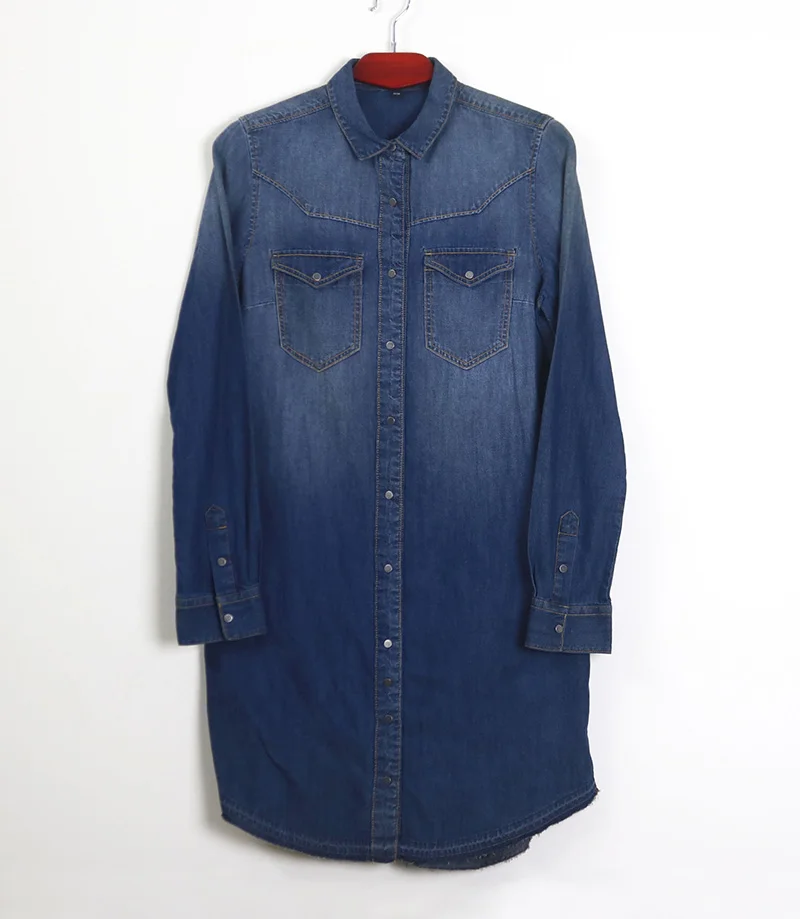 Women’s L/S Double Pocket Double Flap Long Denim Shirt