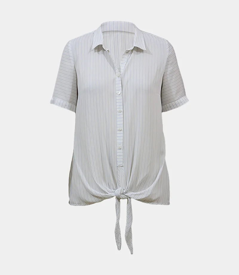 Women's S/S Blouse with Knot at Front Hem