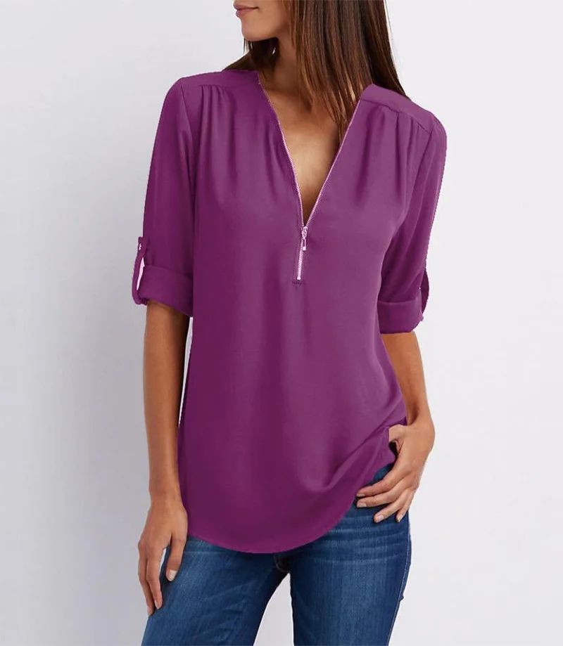 Women's L/S V-Neck Elegant Blouse