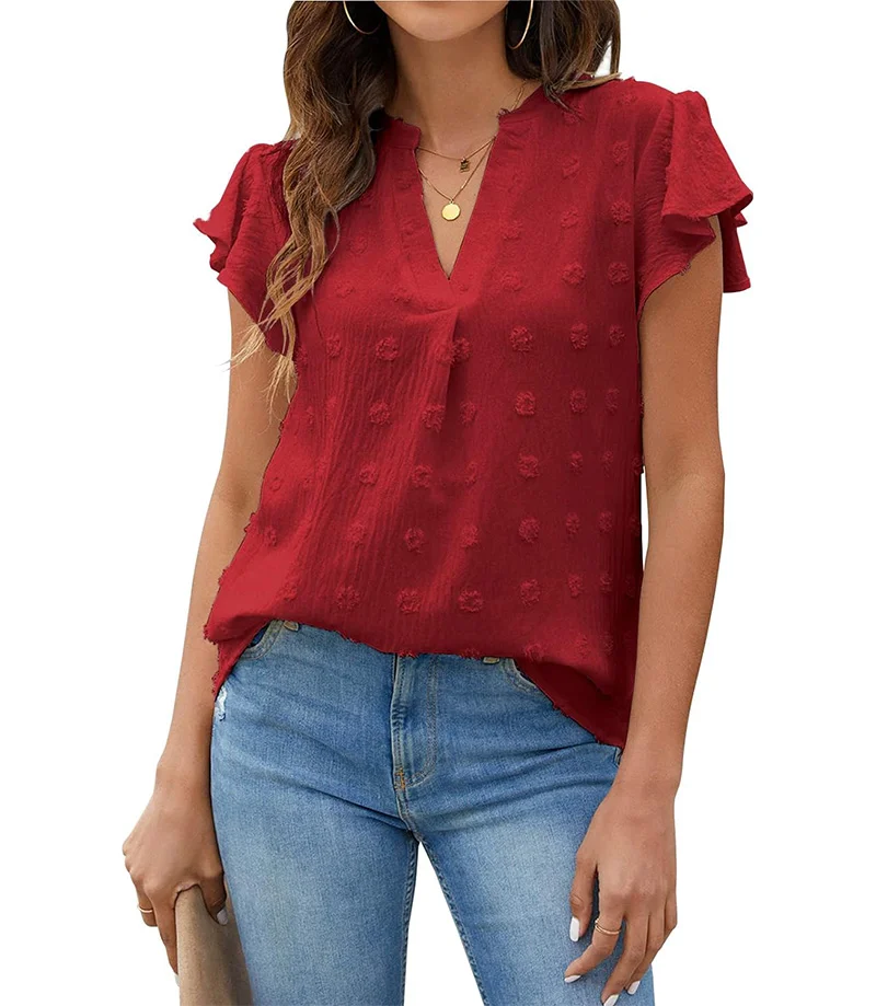 Women's V-Neck Ruffle Sleeve Flowy Blouse