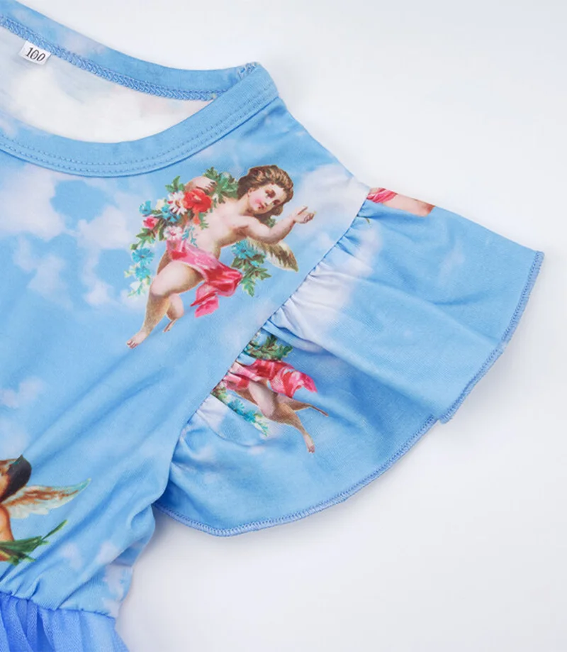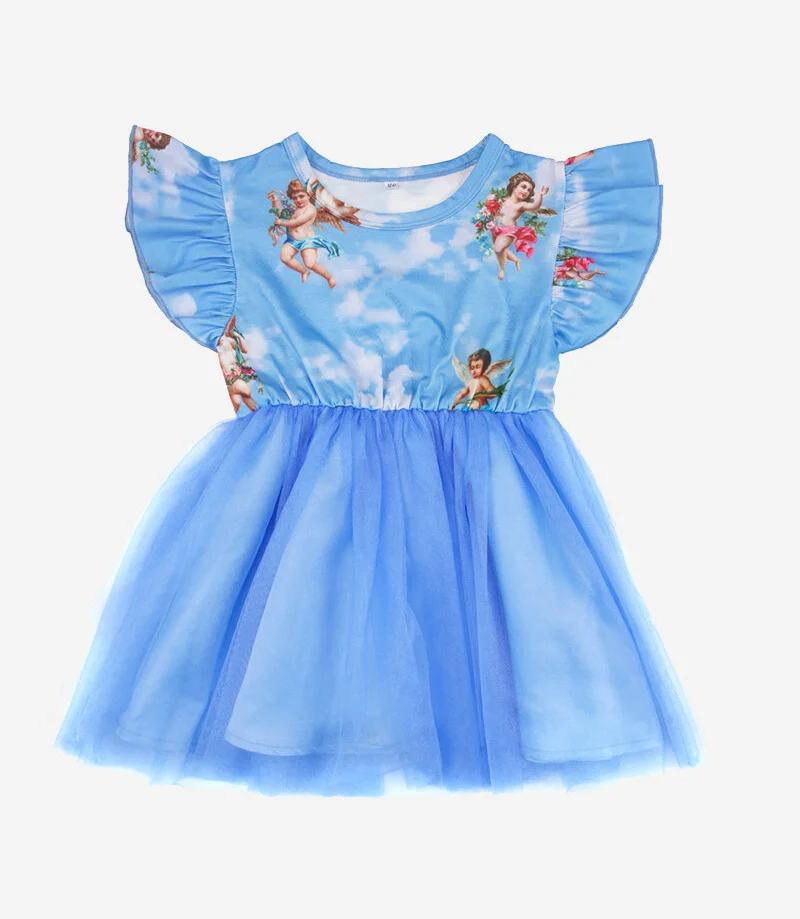 Girls' F/S Tulle Spliced Casual Blue Dress