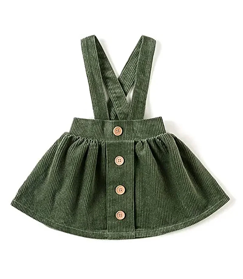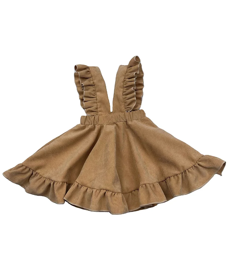 Girls' Back To School Ruffled Corduroy Suspender Skirt