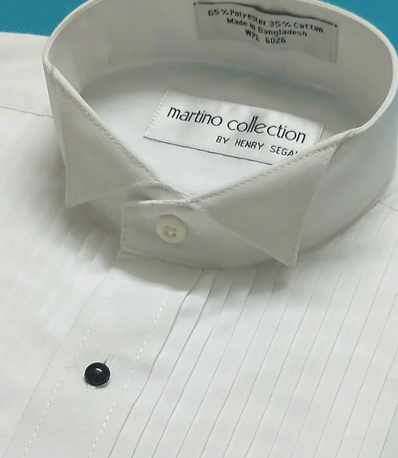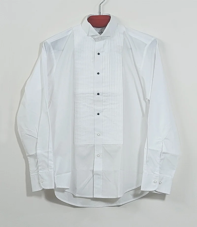 Boys' L/S White Wing Collar ¼” Pleated Tuxedo Shirt