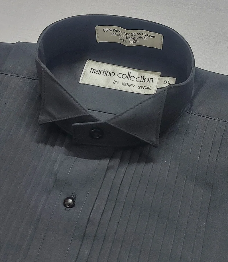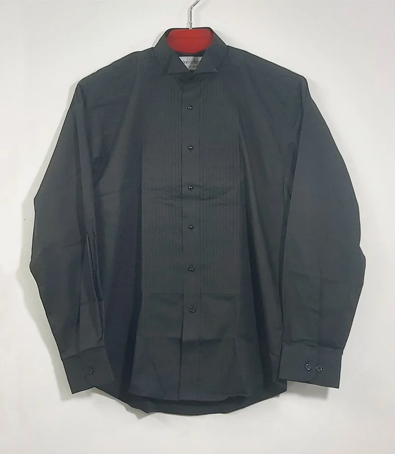 Boys' L/S Black Wing Collar ¼” Pleated Tuxedo Shirt