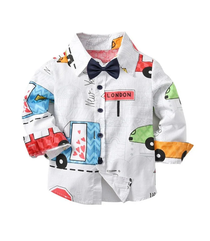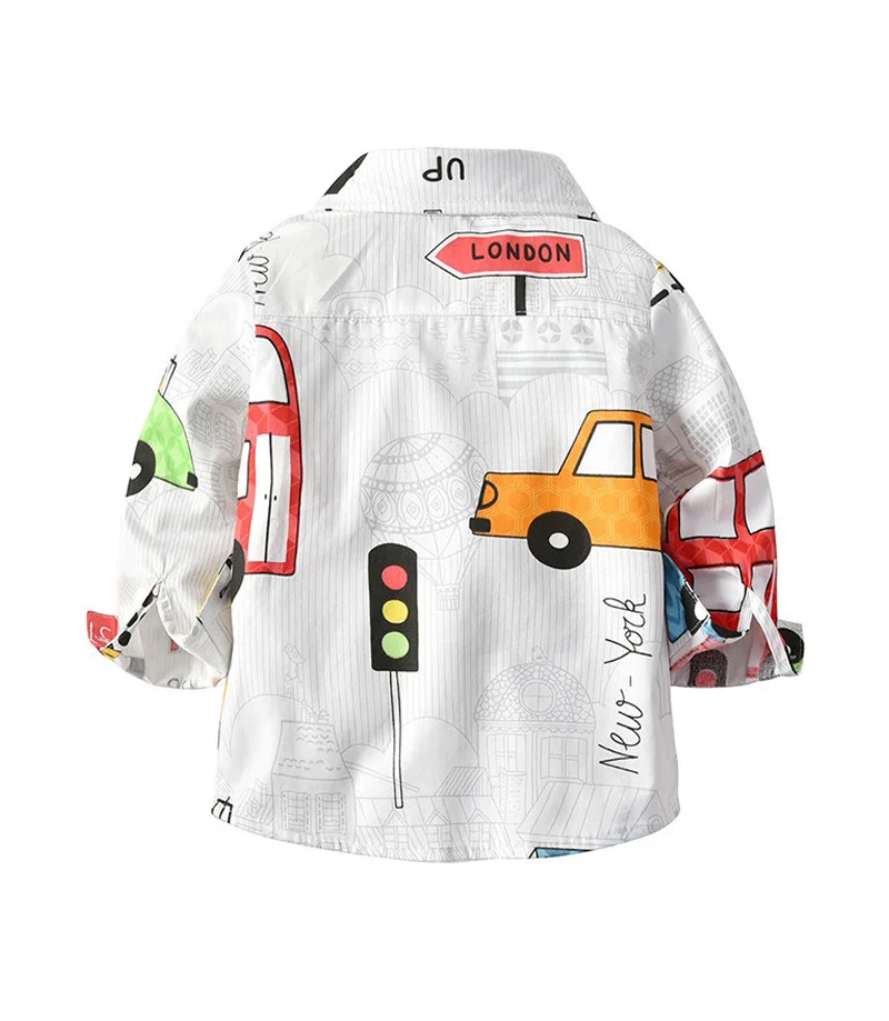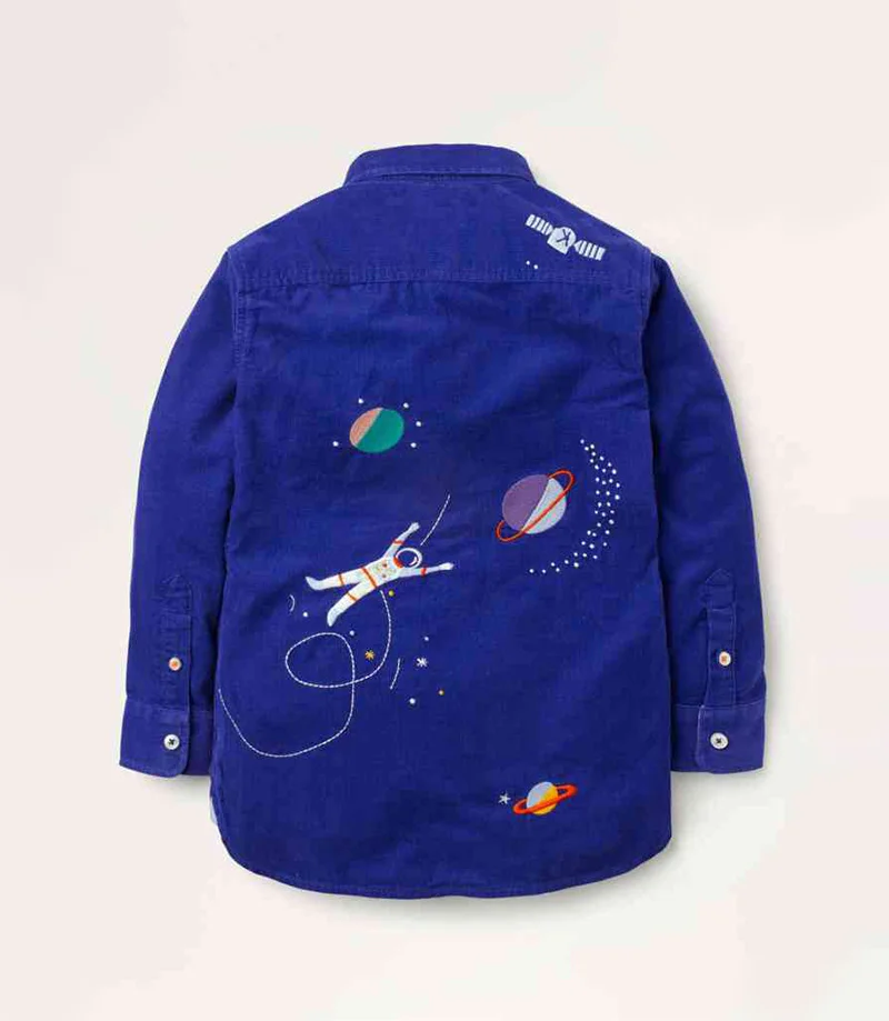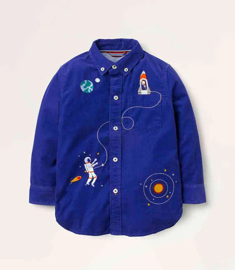 Boys' Space Embroidered Greek Blue Appliqué Cord Shirt
